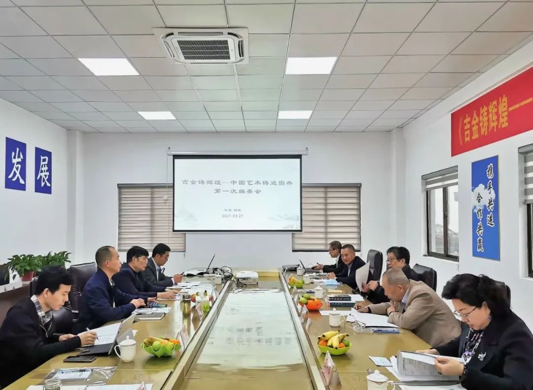 3月26日—3月27日,原中國傳統(tǒng)工藝研究會理事長、中國非物質(zhì)文化遺產(chǎn)專家委員會委員華覺明先生、上海博物館研究員譚德睿、中國科學技術(shù)史學會傳統(tǒng)工藝研究會秘書長王希吟、中國鑄造學會秘書長劉鴻超、《鑄造》雜志社原總編輯葛晨光、廣州美術(shù)學院副教授賴錫鴻、中國科技出版社編輯辦公室主任王曉義等一行來公司舉行由中國科學技術(shù)史學會傳統(tǒng)工藝研究會、中國鑄造學會、銅陵銅官府文化創(chuàng)意股份公司擬與中國科學技術(shù)出版社聯(lián)合出版中英文版著作《吉金鑄輝煌---古今中國藝術(shù)鑄造圖典》的第一次編委會會議。